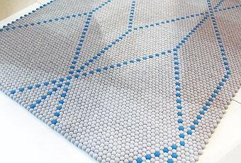 Couleurs pastels, lignes droites, formes géométriques, Scholten + Baijings semble bien maitriser la proportion entre apport esthétique d’un tapis, son confort, son originalité et sa discrétion.