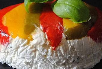 Si vous le souhaitez vous pouvez alterner les couches de poivrons et de préparation au chèvre .