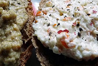 pour l'apéritif voilà deux recettes de tartinade qui régalent souvent mes invités, elles sont simples à faire, délicieuses et faites maison à 100% .....