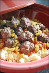 - Disposez la sauce dans un plat à tagine puis les boulettes et parsemez de raisins.