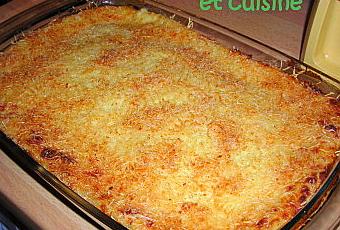 Je vous propose aujourd'hui un hachis parmentier plutôt original que nous avons énormément apprécié. J'ai chipé cette excellente recette sur CuisineAZ. J'y ai apporté quelques modifications.