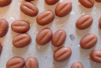 L'odeur est chaude, un mélange des épices et du café, c'est plutôt agréable. Les petits grains fondent très vite, ils sont à conserver dans un endroit frais si vous les fabriquez en été (ou rajoutez de la cire d'abeille pour durcir le tout).