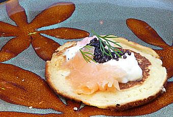Pour l'apéritif, je vous propose des blinis, ces petites galettes d'origine russe. Ils ont l'avantage de se préparer à l'avance. Attention car, dégustés à l' apéritif, ils sont vite bourratifs. Ne pas en prévoir 12 par personne mais 1 ou 2 grand maximum.