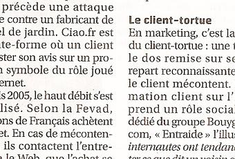 Cet article revient aussi sur la notion marketing du client-tortue « une tortue sur le dos remise sur ses pattes repart reconnaissante, comme le client mécontent« .