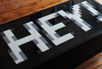 La table « Hey ! » est une table réalisée par un Quentin de Toki Woki (un jeune Français) qui a créé une table à motif « LEGO ». Ingrédient pour cette table : une Ramvik de chez Ikea, une grosse caisse de LEGO, de la patience et de la créativité !