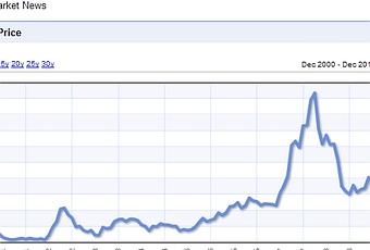 Et ça n’a pas manqué : les cours ont commencé à grimper. Vincent Bénard l’explique ici fort bien : alors que la production n’a pas cessé d’augmenter, les prix, eux, ont commencé à se tendre.