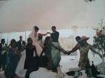 Puis de la même façon s'effectue le lancer de la jarretière. Tous les jeunes hommes font la ronde autour des mariés au rythme de la musique , se tenant par la main. La cadence va de plus en plus vite, les rires fusent, les coeurs battent la chamade. Enfin la musiques s'arrête, tous les beaux jeunes hommes se rassemblent pour savoir qui sera le chanceux qui se mariera le prochain.