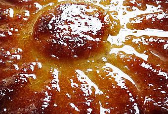 Sortez le gâteau du four, le démouler et laissez le tiédir sur une grille. Le posez sur un plat puis à l'aide d'un pinceau le badigeonner généreusement avec le sirop.