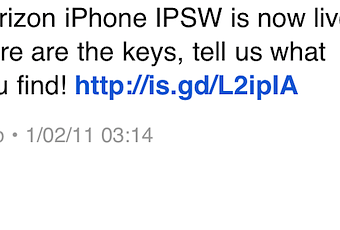 3:14 (insomniaque moi ? Noooooon !) MuscleNerd tweet ceci : « Le firmware de Verizon est maintenant disponible ! Il y a les clés, dites-nous ce que vous trouvez !« .