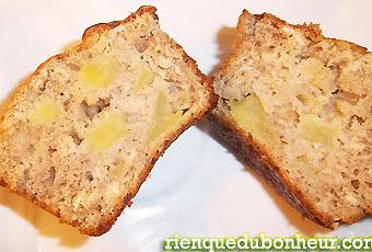 Deux petites pommes s’ennuyaient, et, pomme de reinette et pomme d’api : voilà de beaux et bons muffins, moelleux comme il faut avec le petit aspect croquant des flocons d’avoine, et très légers et très goûtus !