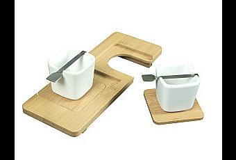 Voilà une idée sympa et pas cher pour la Saint Valentin,un service à café en Bambou et porcelaine,design et ultra pratique.