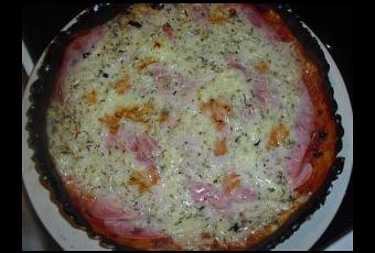 Une fois la pate cuite, verser la sauce tomate sur le dessus, puis les tranches de jambon et enfin le gruyere (sans le lait).