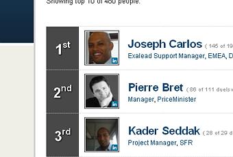 Sitôt que le restaurateur cité plus haut eut fini d’assassiner la gastronomie par d’un terrible jarret 100% pur sel, je m’éclipsais du dit établissement et allais vérifier ce que diable était ce cubeduel. Concept simple : notez vos collègues ! En se basant sur votre profil linkedin, le site vous propose de choisir entre deux de vos collègues celui avec lequel vous préférez travailler.