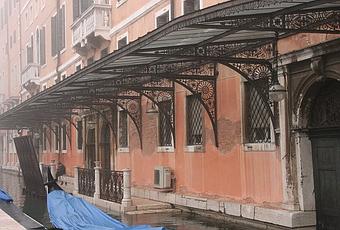 ©Catherine Hédouin... À mesure que monte le soleil, les maisons sont prises dans la dureté de l'air comme des blocs d'ambre. Mais passé cette heure du début du jour, où, comme au crépuscule, Venise semble se ramasser en une solidité compacte, les bâtisses sont de nouveau réduites à de transparentes surfaces ; au soleil, délicatement teintées de rose et de jaune. C'est un imperceptible brouillard qui leur donne ce lisse tissu : mais l'air est si vitreux, le ciel si intact qu'on ne s'en aperçoit pas, sauf quand un rayon, pénétrant de biais l'ombre, révèle ces fines vapeurs en les transformant en poussière lumineuse. Les minces traits blancs forment comme une trame de lin très pur, qui, dans l'ombre, empêche ces pans transparents de se dissoudre.[Liliana Magrini, carnet vénitien]
