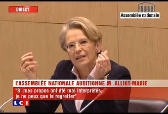 Peu de temps après notre Fredo, héros de l’Odyssée tunisienne, nous fûmes donc gratifiés d’une bouffonnerie de Madame Alliot Marie qui nous récita un texte sans doute mis au point dans les recoins d’un ministère… mais nous n’entendîmes point la version du compagnon, lui aussi ministre… Et dont l’opposition oublie, pourtant, de demander, de la même manière, la démission ! Allez, M’ssieurs - dames de l’UMP, n’oubliez pas d’accuser ladite opposition pour ce sexisme ignoble !