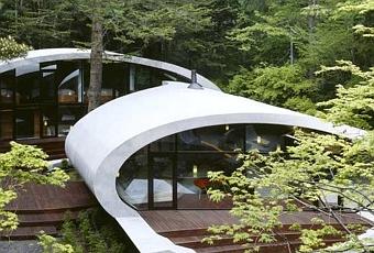 Réalisée en 2008 par Kotaro Ide, de l’agence d’architecture japonaise ARTechnic, la villa Shell est une résidence de vacances construite dans une forêt de Karuizawa près de Nagano au Japon. Caractérisée par un style spectaculaire et sculptural inspiré d’une coquille (ce qui lui vaut son nom Shell), la villa représente une synthèse entre un « style international » assumé et un certain minimalisme propre à l’art de vivre japonais. Mais la maison se distingue aussi par sa grande qualité de construction, puisqu’elle est capable de subir le climat du Japon, particulièrement rude avec ses étés humides et ses hivers froids, qui plus est en milieu forestier. C’est en utilisant les solutions vernaculaires que Kotaro Ide a su relever le défi. Visite guidée de cette magistrale « bicoque » située à à peine plus d’une heure de Tokyo par le Shinkansen.