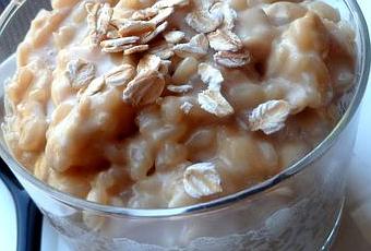 Faire pré-cuire le riz dans de l'eau bouillante non salée pendant 5 à 7 minutes. Égoutter. Remettre dans la casserole avec le lait d'avoine et la vergeoise et laisser cuire 10 petites minutes. Couper le feu et laisser refroidir complètement. Ajouter ensuite les gros flocons d'avoine et le lait, bien mélanger et verser dans les verrines. Servir frais mais pas figé.
