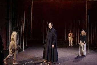 De la mise en scène une première remarque: je n’ai eu aucune surprise; je m’attendais exactement à ce que j’ai vu, ce qui n’est pas forcément un compliment, mais l’économie des moyens, espace dessiné par des bambous tour à tour chambres,