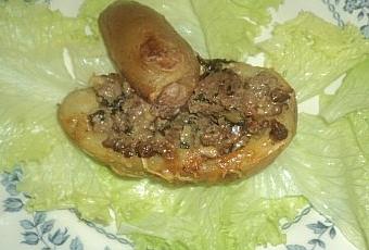 Farcissez les pommes de terre avec la préparation,saupoudrer du fromage et mettez dessus les couvercles des pomme de terre .