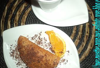 Tartiner la crème d'orange sur la crêpe, refermez la crêpe et la parsemer des copeaux de chocolat ...dégustez !