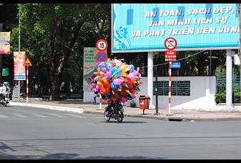Le deux roues (scooter, petite moto) est roi au Vietnam que ce soit en ville ou en campagne. Le code de la route vietnamien est assez simple : Là où ca passe, tu passes. Si ca ne passe pas, tu klaxonnes par intervalles de deux secondes.