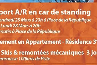 Départ le Vendredi 25 Mars à 22H - Retour le Lundi 28 Mars à 20H pour une Arrivée à Paris le Mardi 29 Mars dans la matinée.