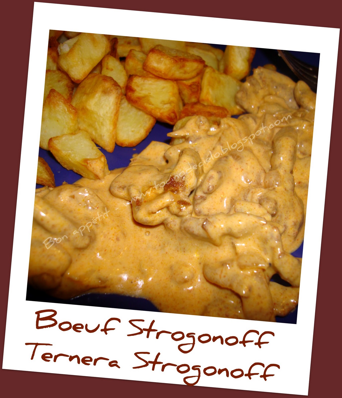 Ingredientes :900 g de carne de ternera (de la para hacer bistec)2 cucharas Actifry de aceite de oliva (o cucharas soperas)300 g de cebolla picada2 cucharas Actifry de pimentón dulce (o cucharas soperas)150 g de nata para cocinarsal y pimientaCortar la carne en tiras. Mezclarla con el pimentón para cubrirla bien. Pimentar.Poner la cebolla en Actifry durante 8 minutos (o metodo tradicional : calentar el aceite de oliva en la olla y dorar la cebolla). Añadir la carne y cocinar durante 7 minutos (metodo tradicional : añadir la carne a la cebolla en la olla y cocinar, removiendo muy a menudo).Añadir la nata. 2 minutos más en Actifry o en la olla. Sazonar y servir bien caliente.Mis truquitos :Como necesitaba mi Actifry, he puesto la carne en el Superchef justo antes de echar la nata. He dejado guisar un poco más con un poco de vino blanco antes de añadir la nata.Pienso que esta receta podria mejorarse añadiendo champiñones cortados.