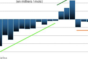 A l'inverse, les services très pourvoyeurs d'emplois nouveaux jusqu'ici avec 120 à 150 000 créations par mois n'ont apporté que 32 000