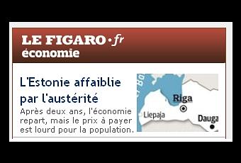 Ce n'est pas la première fois (et sûrement pas la dernière malheureusement) que Le Figaro va se faire descendre sur ce blog!Cela avait commencé en Décembre 2009 avec "l'excellent" récit de voyage à travers l'Europe de M. Hauter (voir la section "Bourdes") et voilà maintenant qu'ils nous délivrent une carte de la Lettonie pour un article traitant a priori de l'Estonie.