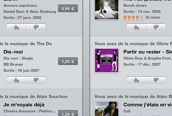Pour permettre à Genius d’affiner ou d’améliorer ses recommandations, un bouton « j’aime/j’aime pas » est accessible directement sur iPad, par un glissé du doigt vers la gauche sur les deux autres iDevices.