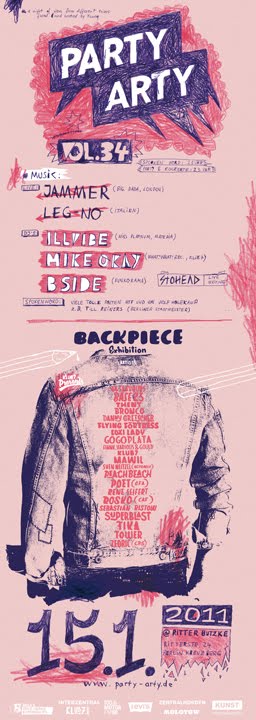 Ça s’est passé à Berlin le 15 janvier. Klub 7, collectif berlinois fondé en 1998, a invité 21 artistes à revisiter le concept de la BACKPIECE tagguée lors d’une soirée, la Party Arty.