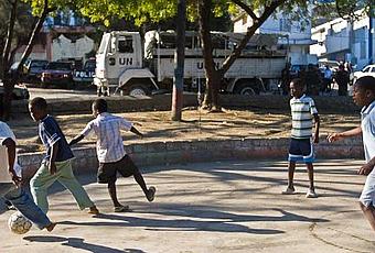 Il y a sûrement pire que l’indifférence, mais je ne vois pas pour le moment. C’est le mot de la journée. En passant à la Place Saint-Pierre ce matin, des jeunes jouaient au foot sans apercevoir le contingent de soldats péruviens qui s’installaient pour une journée annoncée comme chaude. Les péruviens sortaient lourdement armés des camions de transport de troupes, alors que les ti-culs du camp, complètement indifférents jouaient à se prendre pour Messi ou Kaka. «À l’autre bout du spectre social, le Président maintien le silence sur ce qui se déroule dans la société qu’il dirige» me dira Asefi à qui je venais de raconter la scène.