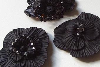 Three black flowers as brooches, gone to Angers (France), with other jewels.
