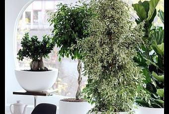 Le Ficus Benjamina, variante aux nombreuses petites feuilles, est particulièrement efficace pour amortir les sons. Les recherches démontrent que la plante peut absorber jusqu¹à 5 décibel de bruit.