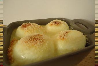 Gratin d'oeufs aux brocolis et béchamel au curry
