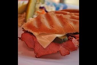 Ceux qui me connaisse bien savent que je fonds juste à entendre le mot smoked meat! Ah ça oui! C'est mon grand péché mignon! Mais je suis raisonnable, je n'en mange pas trop souvent.... Dernièrement j'ai décidé de tenter l'expérience d'un panini au smoked meat... Et pas n'importe lequel! Avec du vrai smoked meat de chez BRYND ! Ah ben là c'était le summum. Pour ceux qui connaissent ce restaurant, sachez que leur produits se retrouvent dans divers lieux de ventes au Québec. Vérifiez sur leur site internet, il y en a peut-être un près de chez vous ;) À Défaut d'aller au Brynd, le Brynd peut aller chez vous ;)