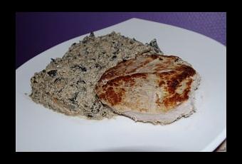 Dans une poêle faire cuire le quasi de veau salé et poivré. faire dorer les 2 faces. Finir la cuisson de la viande dans la sauteuse avec les champignons.