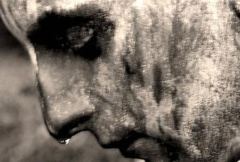 La statue de la rue et la pluie qui ruisselle sur elle en larmes factices