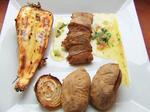 J'ai commencé l'autre jour à faire des magrets et du lomo séché. Pour l'instant, je n'en dis pas plus: ils déssèchent tranquillement... Par contre, il me restait dans un plat le sel où ils avaient séjourné une quinzaine d'heure. Chef Simon conseille de le réchauffer au four. J'ai suivi partiellement son conseil: je l'ai effectivement au four, à 200°, mais pas tout seul. J'y ai rajouté un gros panais et un oignon coupéss en deux et quatre pommes de terre entières (pas trop grosses). Au bout d'une demie-heure, je les ai retournés et laissés pour le même temps.
