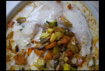 Faire revenir dix minutes les légumes à l'huile d'olive dans un wok ou une poêle avec sel, poivre, une demi-cuillerée à café de piment d'Espelette, du thym en feuilles séchées, un peu de poudre de gingembre (si vous en avez). Beurrer un plat à four juste assez grand pour contenir votre poisson et sa garniture. Déposer la brunoise au fond (en garder un peu), puis les darnes de poisson épongées dans du papier absorbant, salées et poivrées des deux côtés, puis le reste de légumes dans le creux.