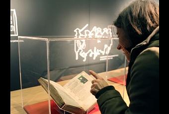 C’est dans le sous-sol de cet imposant temple de la lecture, au coeur de galeries aux mûrs volontairement revêtus de noir et aux lumières tamisées que l’on découvre d’où vient la l’anglais et les différents chemins qu’il a pris au cours du temps. Des Scandinaves aux tribus germaniques, en passant par l’invasion du roi Guillaume et par la même occasion du français, on apprend comment la langue s’est formée et comment elle a évolué. Des ouvrages médiévaux sous-verres aux écritures minuscules aux pubs pour la fameuse marque de chocolat Cadbury, l’expo nous montre aussi les différentes utilisations de la langue. On découvre des objets étonnants comme ce petit alphabet rédigé sur une sorte de corne d’animal qu’on appelle le “Hornbook”. Les enfants du 15ème siècle l’attachaient à leur ceinture pour ne pas oublier les lettres. On n’échappe pas aux fameux gros titres des tabloïds britanniques et à leurs jeux de mots, ni aux projections des bribes des discours politiques de Gandi, ni à l’histoire de l’argot et du fameux Cockney. Et si vous êtes nostalgique d’un séjour linguistique en Ecosse, vous pouvez redécouvrir l’accent charmant de votre petit(e) ami(e) de l’été de vos 15 ans… Il suffit de vous brancher à un des nombreux “points écoute” que l’expo propose.