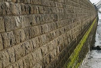 ...pour passer l'examen d'estuaire au refuge du port, le mur n'a plus vraiment rien à prouver.Dame, le vieux, il aura fait ses preuves en toutes saisons et quand il blanchit, lui, il se met au vert. Il se tape une petite mousse tranquille et regarde filer les navigants au large de la vase.Tu vois, ici aussi on a fait le mur... un jour... mais pas pour le cuisiner à la grecque ou y perdre son Hébreu en:"Geder HaHafrada" (grillage de séparation) ou encore l'adul-Corée ou que sais-je encore... Le mur d'ici il a le seing accueillant, et d'ailleurs si j'en crois un vieux dicton du bourg comme explication de texte: "Aperit Et Nemo Claudit" disaient les Bretons anciens -qui n'y perdaient pas pour autant leur latin- laissant la porte sur l'océan digne d'un refuge mais aussi toute grande ouverte pour embrasser le monde . Petite leçon de chose à l'usage des nationaux french'ouillards en mal (au colon) chronique d'impérialisme, ce n'est pas -au nom de l'uniformisation- en voulant nier (niais?) les différences, culturelles, linguistiques...que l'on se rend disponible dans son ptit crâne fragile (et inquiet sans doute) pour accepter le droit à l'existence des autres semblables( mais richement que nous, ou vous,différents).Ici aussi on a fait le mur... mais plus par humilité que postérité et surtout pour prendre quelques soins avant de refaire le perpétuel voyage.