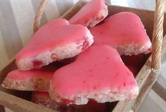 Mixer les fraises séchées bien finement au couteau en y ajoutant la fleur d'oranger. Mettre le tout dans le mixeur, ajouter la poudre d'amandes et le sucre glace. Bien mixer jusqu'à obtenir une boule de pâte collante. Étaler la pâte entre 2 feuilles de papier sulfurisé, sur 1cm d'épaisseur maximum. Laisser sécher quelques heures. Puis découper des formes à l'emporte-pièces. Laisser sécher 12h. Faire le glaçage en lissant bien. L'appliquer sur les calissons, laisser sécher encore au moins 12h.