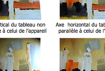 Bien centrer la caméra sur le centre du tableau et incliner la caméra selon l'inclinaison du tableau. Ne pas utiliser une lentille grand angle, sauf si vous êtes amenés à zoomer.