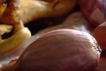 2. Prenez une cocotte, le Creuset de préférence, faites fondre le beurre et l’huile. Incorporez le poulet et faites revenir pour blondir sa peau. Ajoutez les échalotes et les girolles et après 10 min, retirez le poulet et dégraissez.