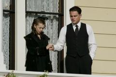 Voici quelques photos issues du plateau de tournage. On y voit Leo avec une coiffure adaptée à son personnage. Bizarre de le voir avec des cheveux plus foncés, bouclés... et sans son bouc...