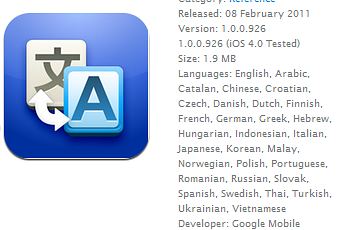 Google vient de rendre disponible sa nouvelle application de traduction sur l’App Store. Nommée “Google Translate”, cette dernière permet la traduction de texte en 57 langues et offre également une fonctionnalité de reconnaissance vocale et de text-to-speech.