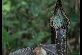 La chauve-souris s'abrite dans le reseptacle de la plante et celle-ci récupère ses déjections qui lui apportent plus de 33% d'azote nécessaire à sa survie .
