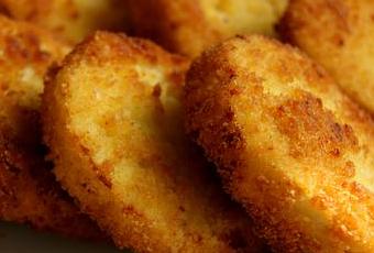 Pour la panure, préparez trois assiettes creuses remplies respectivement et dans l'ordre de : farine, oeufs battus et chapelure. Trempez chaque rondelle de poulet successivement dans ces trois assiettes et mettez à frire dans une friteuse ou une poêle avec une bonne hauteur d'huile chaude. Epongez les nuggets sur du papier absorbant.Servez bien chauds.