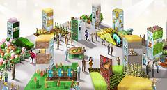 Peuplée d’immeubles hauts, quadrillée de rues et ponctuée de jardins et signaux urbains, la Cité fertile accueillera les visiteurs qui pourront découvrir les richesses de la Cité grâce à trois personnages hauts en couleur qui leur raconteront l’histoire de cette Cité fertile en les guidant de bâtiment en bâtiment. Chacun des neuf partenaires présentera un espace dédié, au travers duquel les visiteurs pourront découvrir les débouchés par filière, les dessous des cultures végétales, la multiplicité de leurs rôles dans l’alimentation, la chimie verte et blanche, la protection de l’environnement, l’habitat, la production d’énergie…
